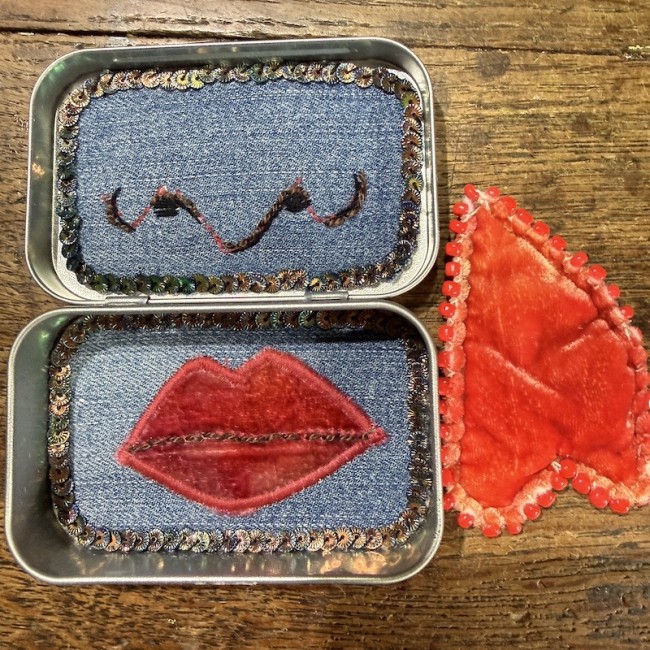 broderie d'une bouche , accompagnée d'un petit coeur de velour